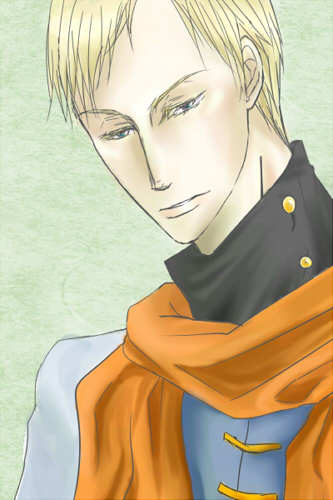 初期:cv参加しようという話に→異質文化から来た感じの人が欲しい→金髪碧眼→もうひとりは護衛だから、医者か護衛だな→顔面麻痺というアイディアがどっかから出てきた→服のデザインお願いします→神様が全身図を描いてくださった。